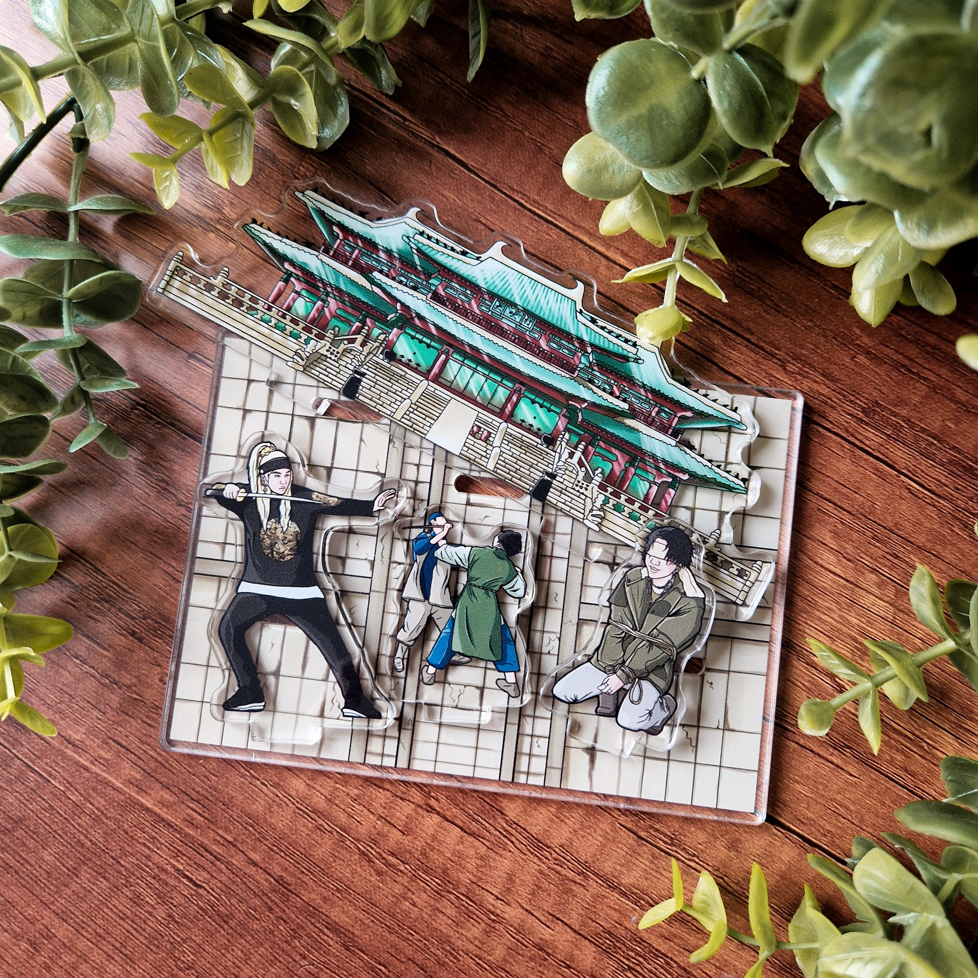 The standee comes with 1 base, 2 Agust D, 1 JinKook and a building.